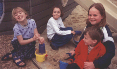 Ashley and Skyler with Chloe and Conor in the Hingham play area. |